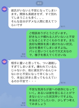 - 返事のスピードもあなたに合わせて柔軟に対応します